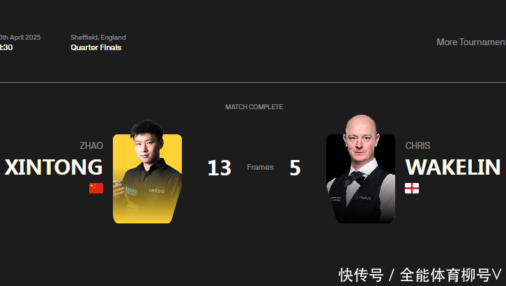 北京时代5月1日凌晨,2025年斯诺克世锦赛接续进行1/4决赛的争夺。一场焦点比赛中,中国名将斯佳辉接续挑战7届世锦赛冠军“火箭”罗尼-奥沙利文。前两个阶段,斯佳辉打得相配武断,他轰出两杆破百,暂时以6-10过期,第三阶段期待大逆转。另一场比赛,赵心童以13-5晋级决赛。